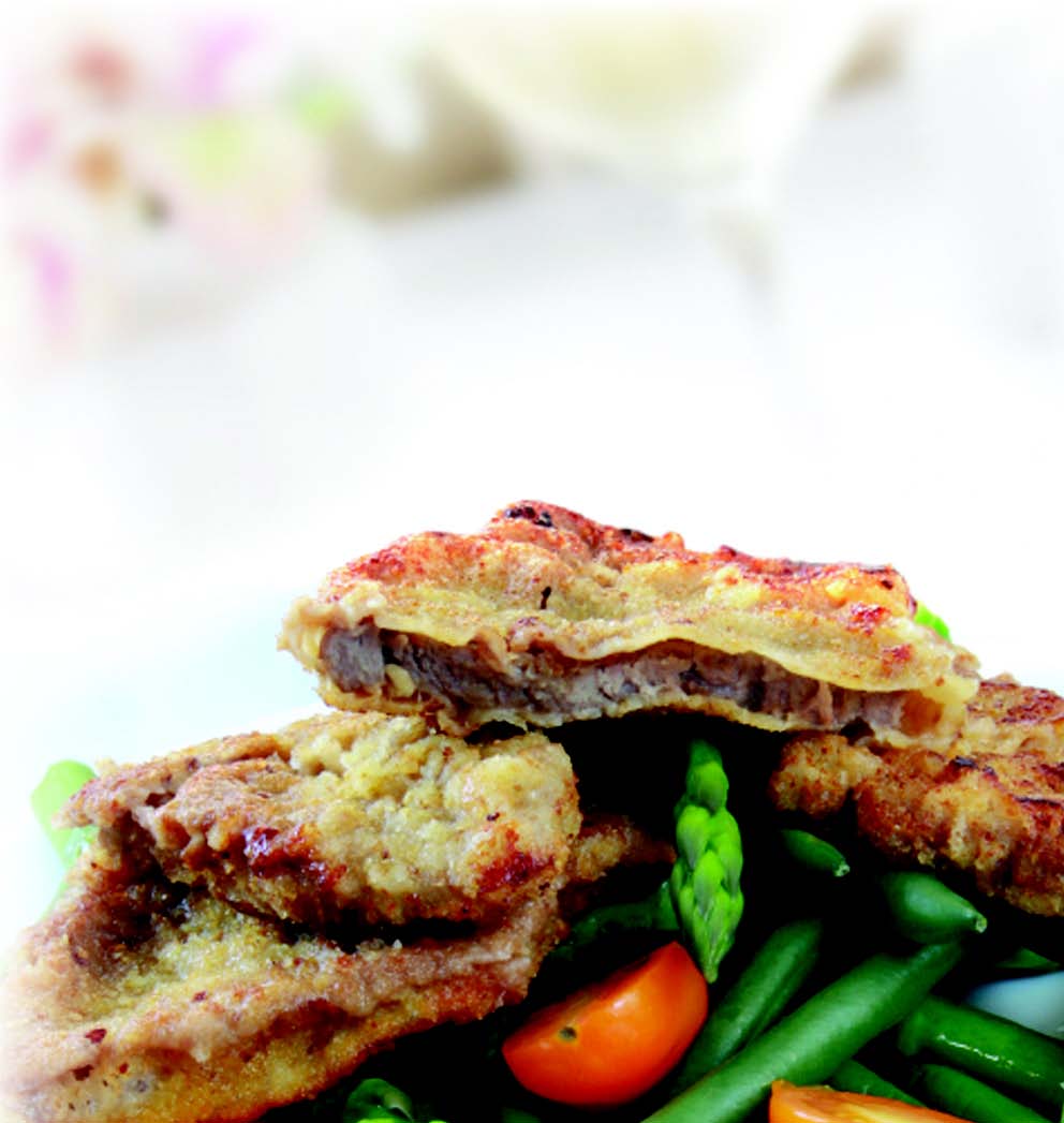 - Za umak: Na ostatak masnoće dodajte bijelo vino i kuhajte nekoliko minuta, dodajte vrhnje, sok od limuna, posolite, pobiberite i pospite sitno narezanim peršunom.
