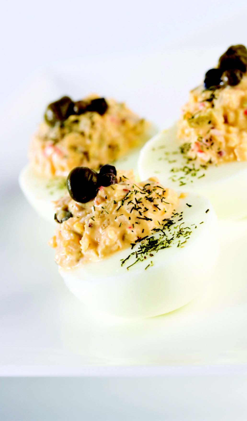 - Sve sastojke izmiksajte u homogenu smjesu i njome pomoću vrećice za dresiranje punite polovine kuhanih jaja.