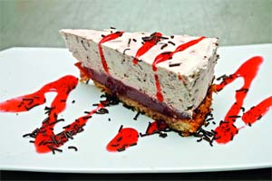 - Puding i želatinu pomiješamo s vodom, tu smjesu dodamo u višnje i kuhamo par minuta dok ne počne zgušnjavati. Vruću smjesu skinemo s vatre i odmah prelijemo preko ohlađene kore, ravnomjerno rasporedimo i ostavimo da se ohladi.