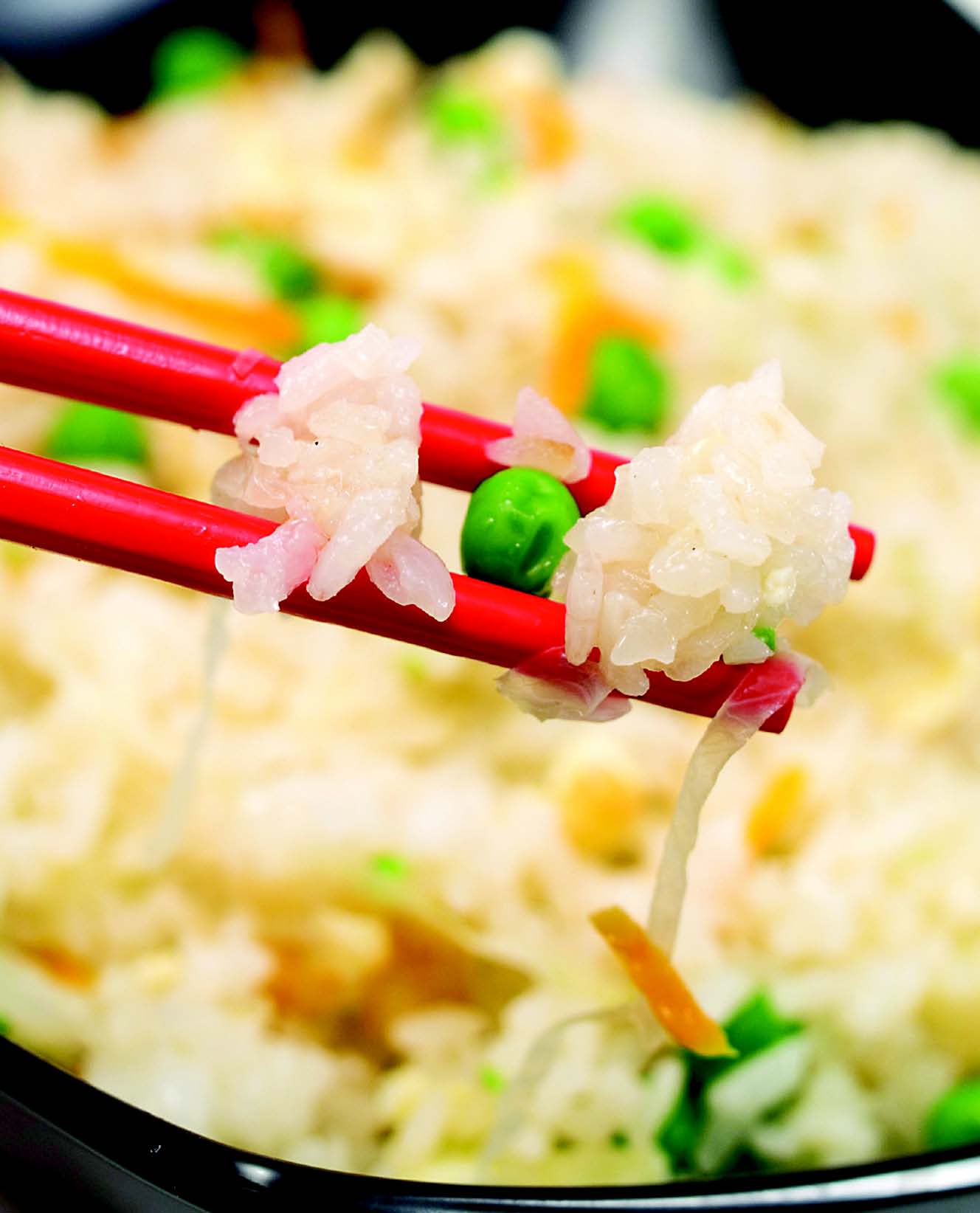 - Kada riža bude skuhana, dodajte grašak i luk i dobro promiješajte.
