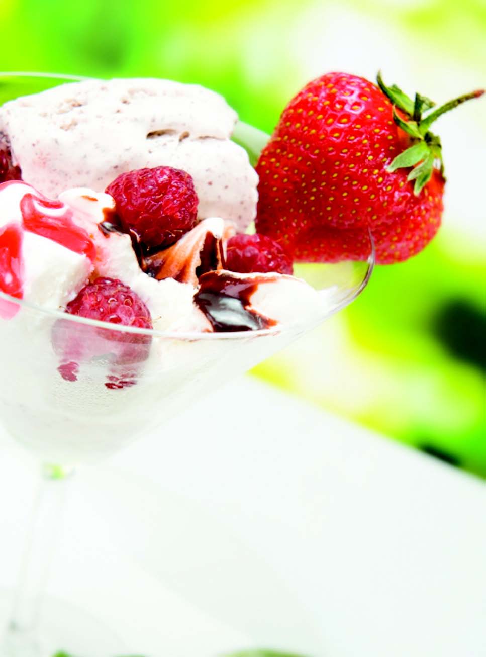 - Sladoled od vanilije stavite u dvije vinske čaše i na njega složite jagode.