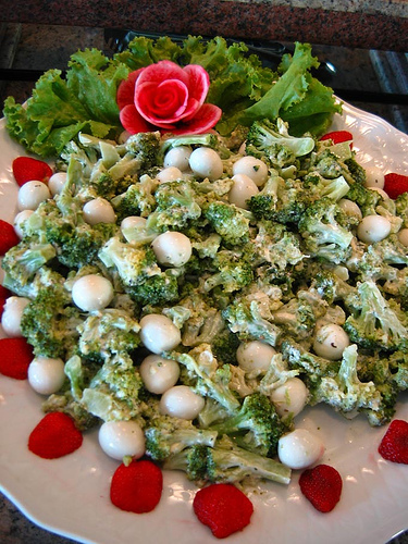 1. Brokule dobro operite, skuhajte u slanoj vodi i narežite na sitne komade. Komade brokule stavite u zdjelu i prelijte mješavinom od tri kašike maslinovog ulja i soli. Ostavite da se mariniraju jedan sat.